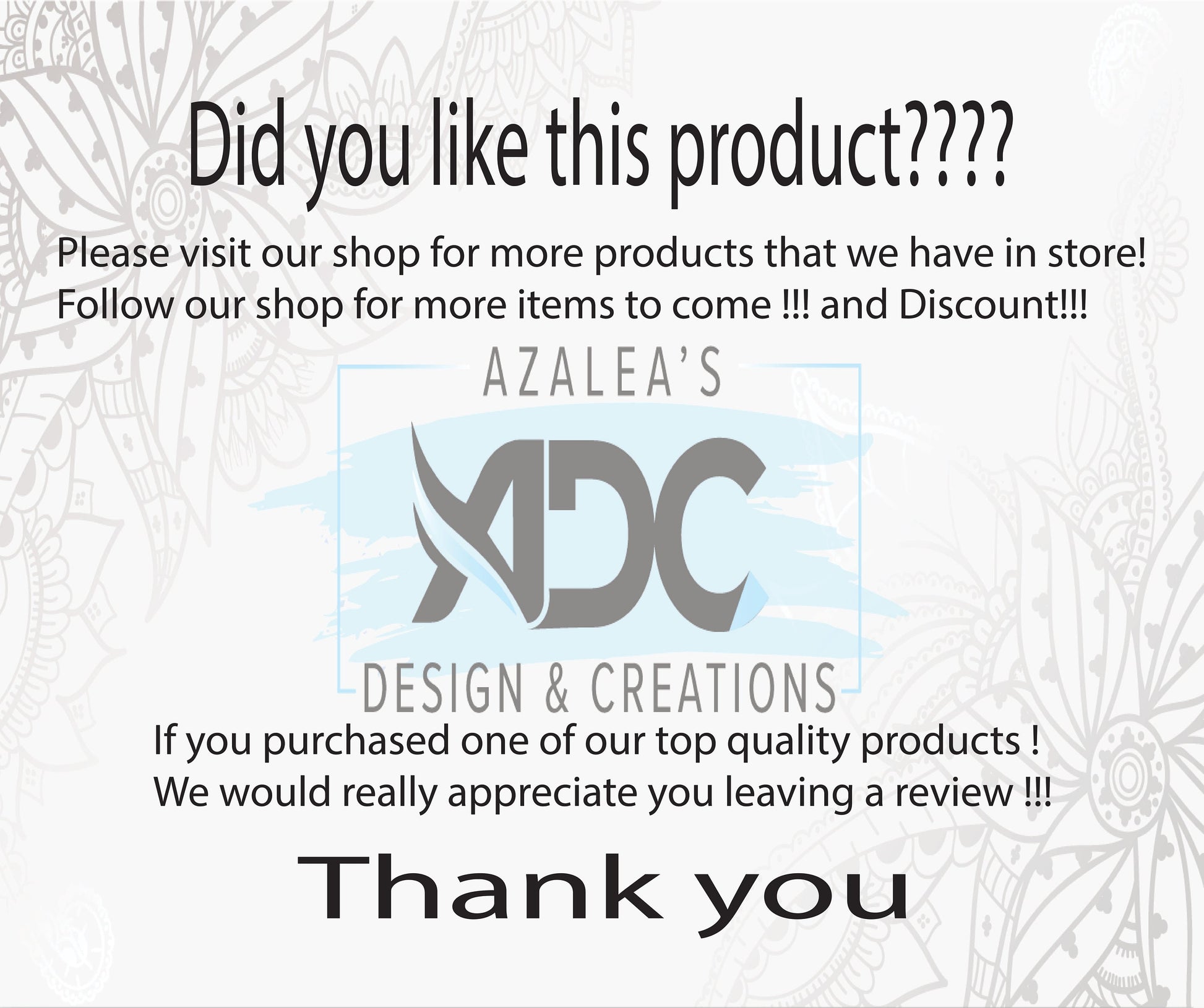 Please visit our shop for more designs and products.
